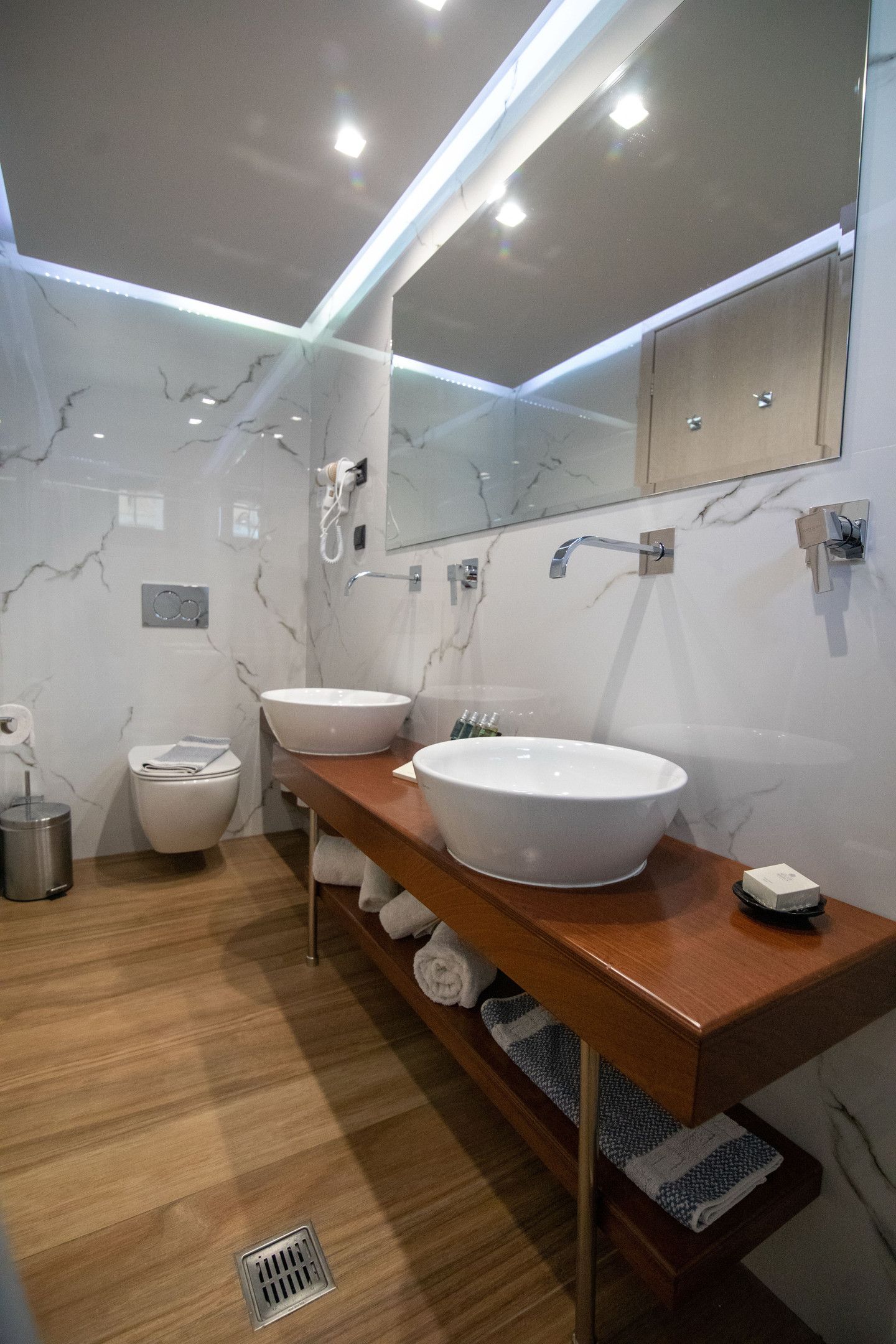 Offering a unique experience for those who appreciate luxury, this Junior Honeymoon Suite with Sea View and Outdoor Hot Tub can comfortably accommodate up to three people. It features a double king size bed in the bedroom and a sofa bed in the living room. It also offers a terrace with magnificent sea views.